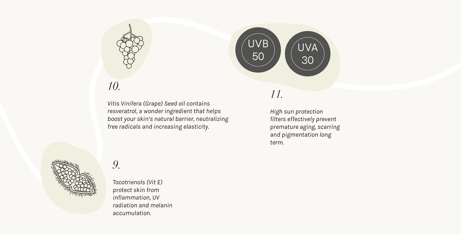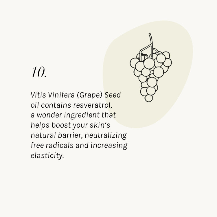 Grape Seed Oil protects skin from environmental stressors and has strong antioxidant properties.