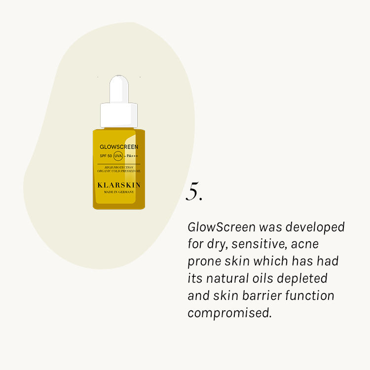 Dr Ruether has formulated this oil specifically for acne prone complexions, especially those depleted of natural oils from using skincare or pharmaceuticals that have stripped or dehydrated skin's natural barrier function. Formulated to be used daily, our GlowScreen nourishes and regulates skin, whilst protecting from UV and blue light all at once.