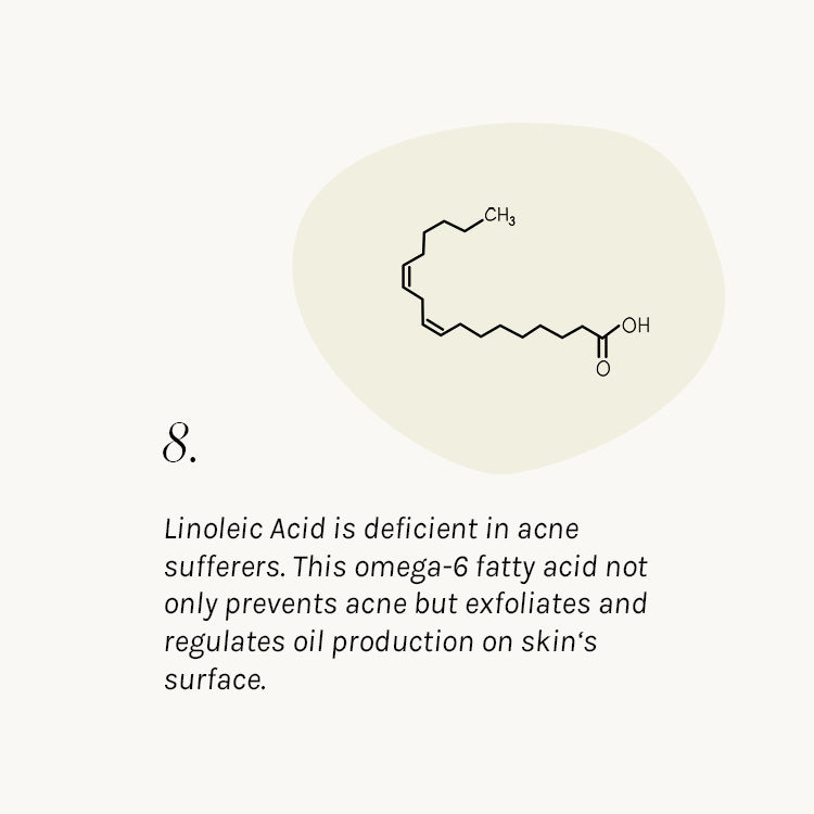 Linoleic acid helps skin synthesize its own lipids (fats), including ceramides, helping repair the skin barrier long term.