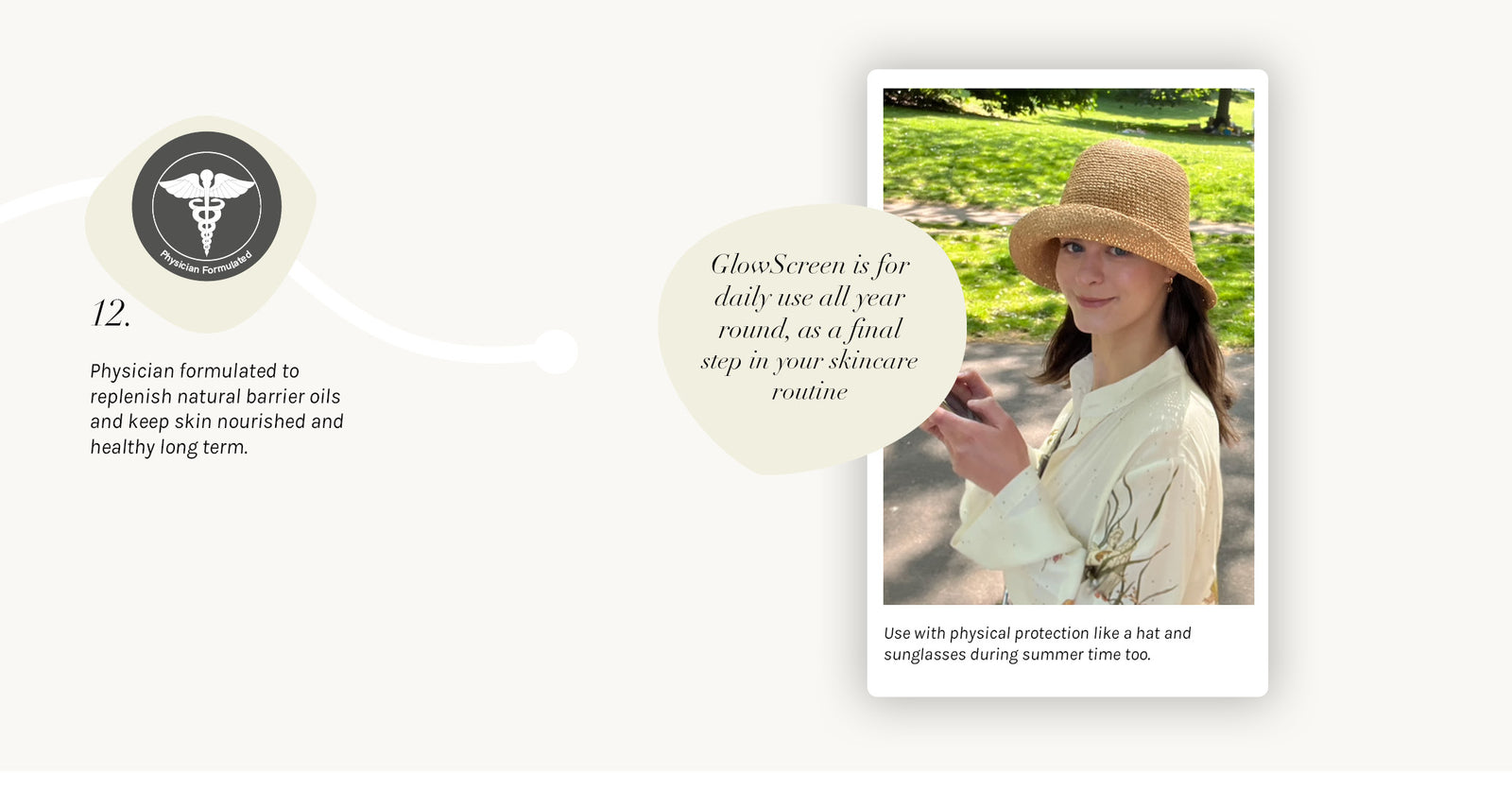 He formulated and tested the UVA and UVB efficacy of GlowScreen personally, reaching a high protection status of SPF50.