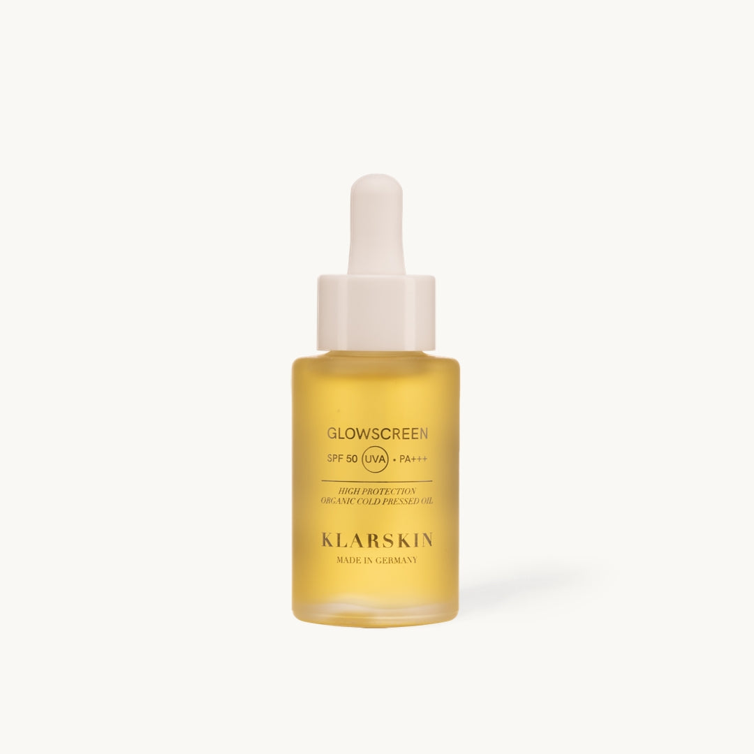 Klarskin's SPF50 isn't just about UV protection. It's a multi-tasking wonder that also helps rebalance oil levels and dissolve excess sebum, making it ideal for acne prone skin. It aids in building the lipid barrier, a crucial layer that shields the skin from external threats with Linoleic Acid, Reservatrol and Tocotrienols all found within. It prevents moisture loss and keeps pollutants at bay. GlowScreen SPF50 oil is a game-changer for acne prone skin. This organic cold-pressed oil offers robust protection against UVA, UVB, and even the insidious blue light.