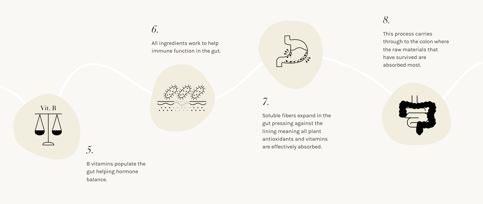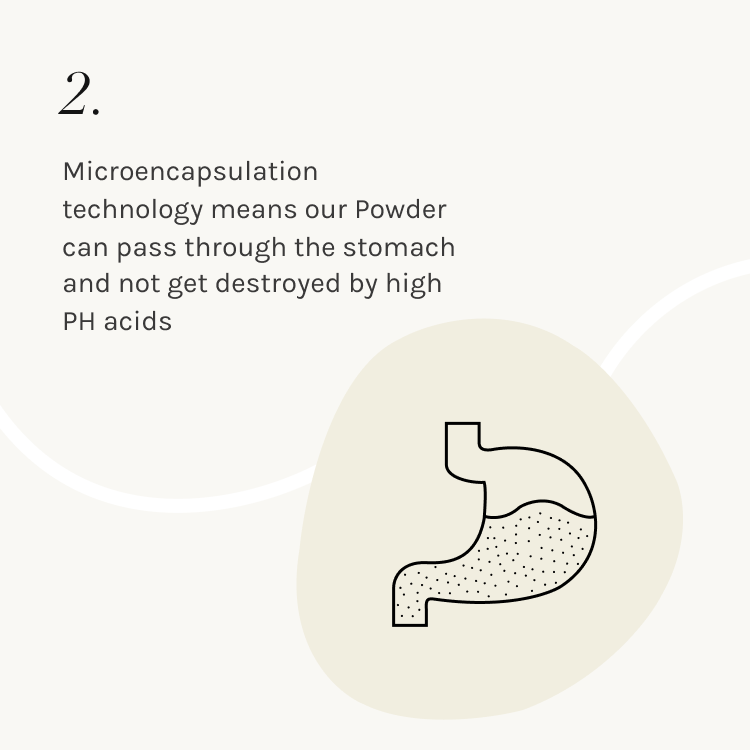 Gut Barrier Function: Ingredients are microencapsulated to successfully reach the colon and intestines where they are able to nourish and rebuild a healthy gut barrier function.